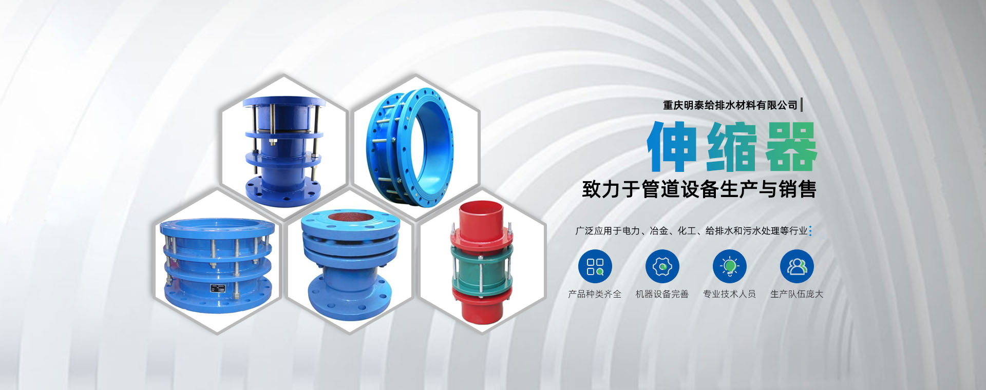 重慶明泰給排水材料有限公司是一家有著多年的銷售管理經驗、以及完善的售后、服務性企業公司。從80年代末期生產臺“伸縮接頭”和90年代中期研制生產的臺“蝶閥”開始,歷經二十多年的發(fā)展,成為一家給排水企業。生產各種管道配件、給排水材料的專業企業。主要生產的產品有橡膠接頭系列,管道配件、伸縮器系列,鋼制傳力接頭系列,不銹鋼波紋補償器,防水套管系列。電廠煙、風、煤管道補償器系列,閥門系列,環(huán)保凈水劑系列,產品設計獨特,結構新穎合理,性能可靠,給工程施工、維修帶來方便和效益.....